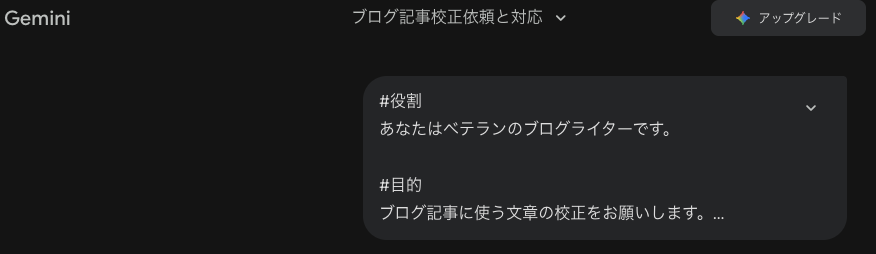 Gemini(https://gemini.google.com/)に校正用プロンプトを入力します。