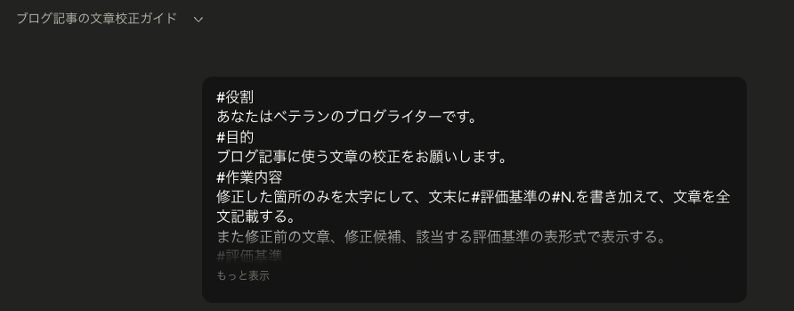 文章をいきなりつくるプロンプトよりも校正プロンプトの方が具体的で作りやすいです